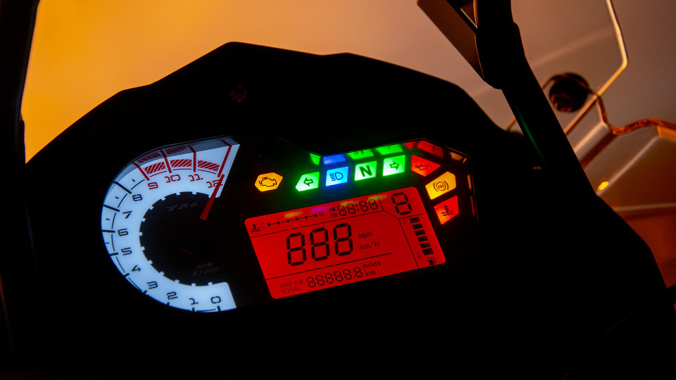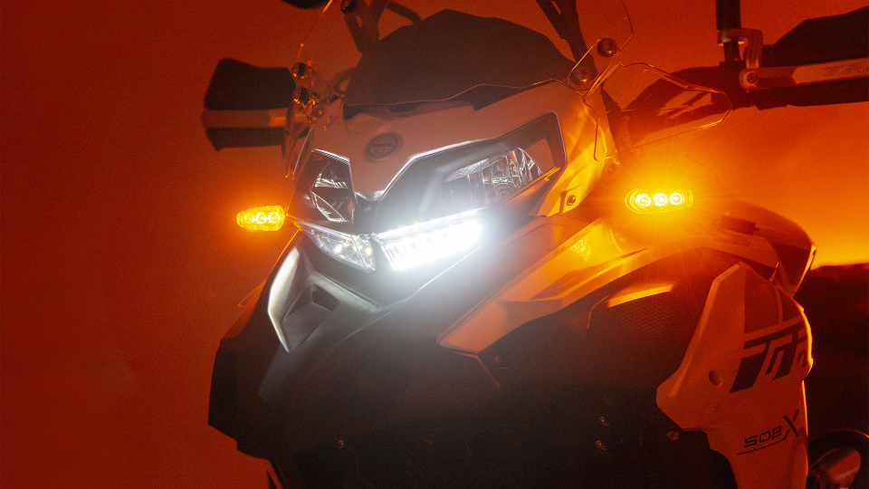 Suba a bordo del TRK 502 orientado a la aventura de Benelli y la carretera será su billete a la libertad. Ya sea que viaje por la ciudad o por el país, la TRK es la compañera de viaje perfecta. Con su cómoda ergonomía, increíble protección contra el viento y la intemperie, suspensión capaz y motor bicilíndrico eficiente y potente, puedes convertir cada día en una aventura diferente, descubrir nuevos mundos, todo sin ninguna limitación. Envuelto en un marco de enrejado de acero Benelli tradicional, se encuentra el nuevo bicilíndrico de cuatro tiempos refrigerado por líquido de 500 cc, desarrollado por Benelli para sus últimos modelos nuevos, con inyección electrónica, sistema de sincronización de doble árbol de levas en cabeza, 4 válvulas por cilindro. La potencia máxima es de 48 CV (35 kW) a 8500 rpm y el par es de 46 Nm a 6000 rpm, lo que significa una respuesta perfecta en todas las condiciones. La suspensión ofrece el máximo confort para el conductor y el pasajero, gracias a una horquilla delantera invertida ajustable y, en la parte trasera, un basculante con monoamortiguador. Muestra de ello el rendimiento de frenado, gracias a los dos discos delanteros, de 320 mm de diámetro, y a la pinza flotante de dos pistones. El disco trasero tiene un diámetro de 260 mm y también está sujeto por una pinza de doble pistón. Estabilidad, seguridad y precisión son las palabras clave de esta nueva Benelli TRK 502. Así que súbete a un TRK 502. Y aléjate.